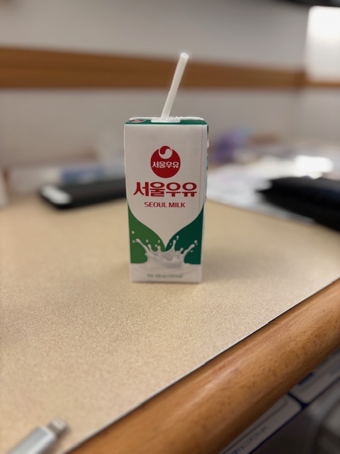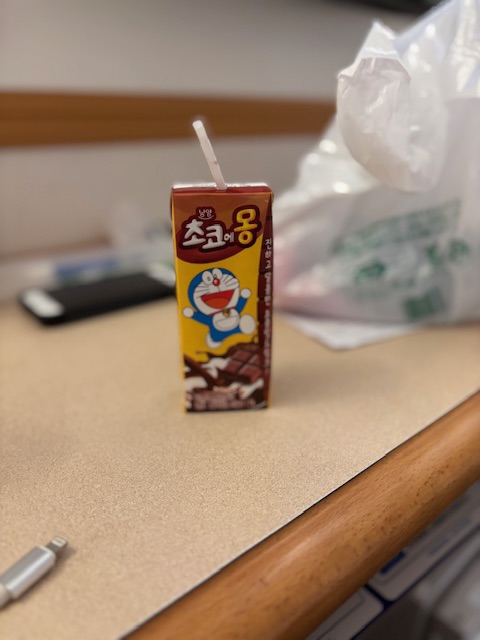 韓国のコンビニで飲み物を買いました。チョコえもんと、ソウル牛乳です。